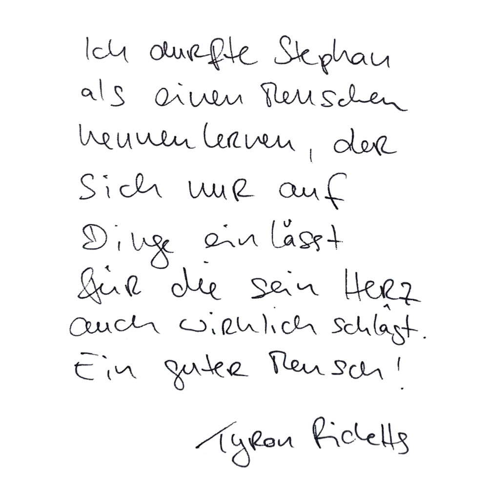 Ich durfte Stephan als einen Menschen kennenlernen, der sich nur auf Dinge einlässt für die sein Herz auch wirklich schlägt. Ein guter Mensch!